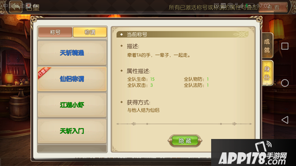 1. 结婚成功后夫妻双方都会自动获得双仙戒指 (点击阵容--查看角色)