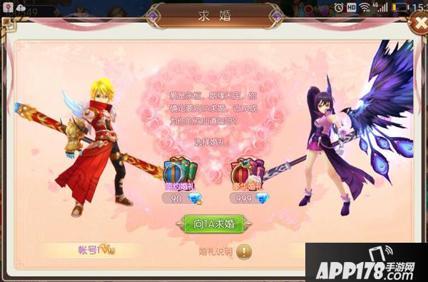 4. 豪华婚礼流程:双仙契约仪式--礼炮贺喜--全服红包--喜糖五撒 (花费999钻石),详见下附图。