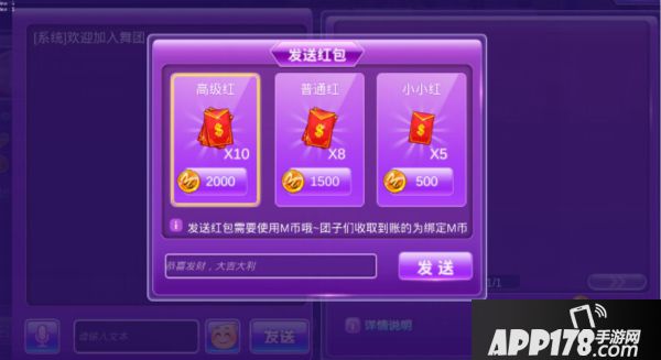 玩家期待已久的舞团红包终于上线了,舞团红包发放使用M币,有不同的金额档位可选。舞团中有人发红包,所有团员都会收到红包通知。红包在一定时间内被领完,发放者可获得奖励,未领完的会返还。有了红包是不是舞团玩法更接地气了呢。
