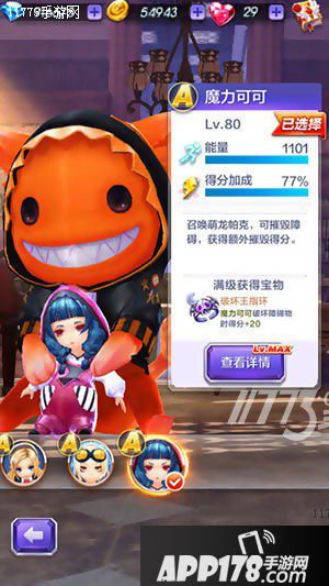 她召唤了自己的好伙伴萌龙帕克时,就可以在游戏中横冲直撞,摧毁障碍物,无惧任何阻碍,而且还可以获得额外摧毁得分!简直太爽了!而满级时,亦可以获得宝物破坏王指环,在破坏障碍物时可以获得额外加分。