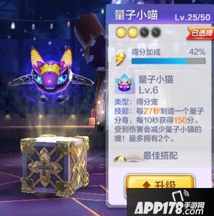 以得分加成为主来选择,小虎用的是量子小喵,每10秒会获得150分,还可以分身额外产生得分,属于得分比较稳定的宠物。