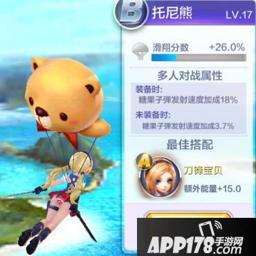 滑翔伞由于暂时没有影响金币加成的,所以小虎这里选择托尼熊,为刀锋宝贝最佳搭配,增加少许能量。桃丽丝目前没有最佳搭配的滑翔伞。