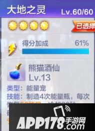 大地之灵初始得分加成13.5%,满级得分加成为61%,也高出了很多,而且在技能里面,每次的能量恢复也由20→50,降低伤害也由16%→40%。