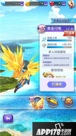金枪小帅滑翔伞最佳搭配为-黄金闪电,果然是土豪啊,翅膀也是金灿灿的!
