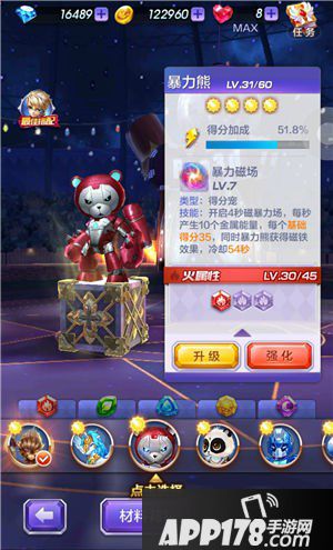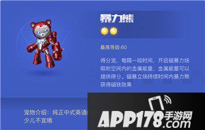后来,暴力熊长大了。它穿上机甲,来到了特工学院,成为了《天天酷跑3D》里的一只得分宠物。它的技能“电磁风暴”可以开启4秒磁暴力场,每秒产生10个35分的金属能量,同时暴力熊获得磁铁效果。如果和金枪小帅搭配,距离分数可以加7%哦!总的来说,是非常强力的一只宠物。
