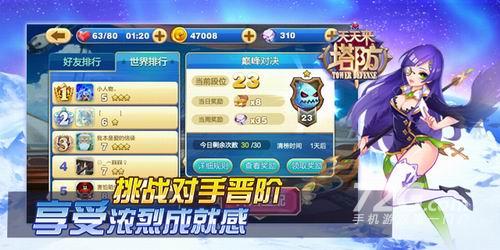 在 《天天来塔防》PVP竞技中,玩家想要登上天梯需要累积“星星”提高竞技等级,在达到一定阶段后,战胜对手能获得星星,失败则会扣除星星,实力强劲的玩家 会逐步脱颖而出。玩家在面对实力相差不多的敌人时,通过更合理的炮塔布局战胜对手,获得的成就感非常强烈。另外,《天天来塔防》还打造了好友排行榜和世界 排行榜两大排行榜,榜上排名越高奖励也会相应增多,最大程度让玩家“名利双收”。