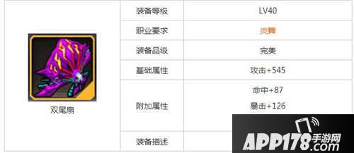 以上就是小编为大家带来的天天来战双尾扇属性图鉴,希望大家喜欢。更多精彩的游戏攻略,敬请继续关注APP178手游网。