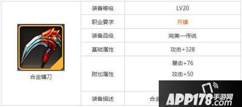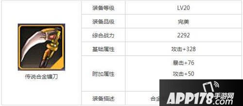以上就是小编为大家带来的天天来战合金镰刀属性图鉴,希望大家喜欢。更多精彩的游戏攻略,敬请继续关注APP178手游网。