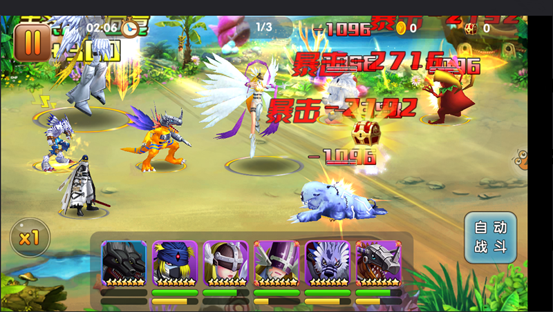 《天天数码兽》制作团队考虑到玩家在推图过程中需要一次次的重复操作,通过优化战斗玩法采用自动战斗让玩家释放双手,可以通过X1/X2加速通过一些基础关卡,让玩家轻松愉快的体验战斗乐趣。另外,天使许愿池也是一个不错的地方,不仅有海量经验,还有随机的各种装备、材料、灵魂石等着你,是新手前期快速升级的首选。