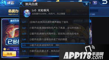 煞风白虎的类型属于半攻击半防御性神兽。1-3星白虎技能都是发起龙卷风打击身前敌人,而4星白虎发起的龙卷风会合并形成一道风的障壁。障壁后面的白虎会随着障壁上前冲,给敌人一个猛击,能把敌人推在空中。