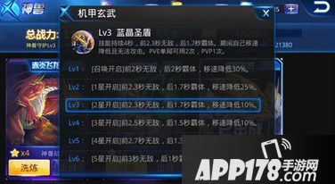 玄武的技能是蓝晶神盾,其主要能力是防御。玩家释放技能后,会有一段时间的沉默,沉默期间无法进行任何攻击。这个技能可谓是保命神技,很多时候它也是我们在竞技逆转局势的依仗。