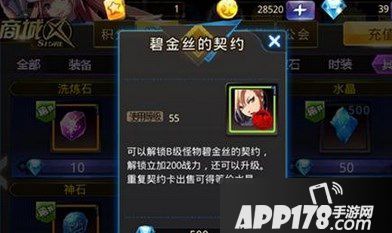 玩家可以通过商城购买获得对应的怪物契约,玩家可以使用钻石在商城中购买2个B级的怪物契约,好像是500钻石一个吧,还是在玩家的接受范围之内的,毕竟解锁一个怪物对玩家来说战力加成也不少呢!