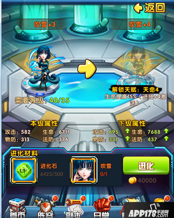 其次说说升级,前期推荐都是以副本掉落的白卡来维持英雄升级。除临近进化外,适当的购买金经验雕像,或者挑战日常经验雕像副本来辅助升级。而到了35级之后,平息灾害玩法功勋奖励的金经验雕像也能拟补这方面的空缺,所以关于升级方面所需经验并不需要太担心。此外是需要说说升级所消耗的金币,金币不足的话,适当优先升级能进化的英雄会对战力提高比较有帮助。此外说说过渡期紫色英雄的升级,其实并不用担心,因为紫色英雄的分解跟重生会返还升级时所消耗的全额金币及基本全额的经验值。