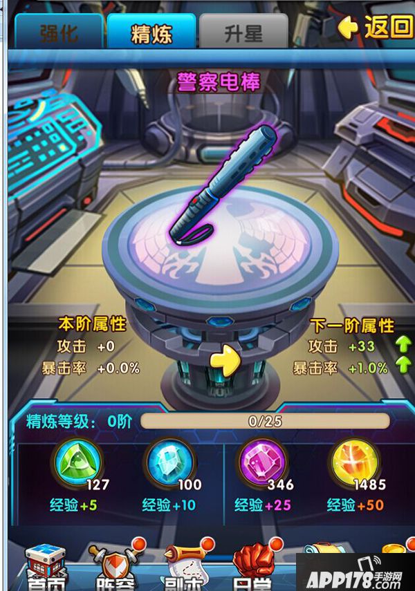 直接在装备系统里选择一件装备进行精炼即可。每一级所消耗的精炼石数量不相同,依次递增