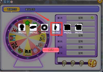 在每日签到中连续签到7天可点亮一盏灯,当点亮三盏灯并再连续签到7天后可打开宝箱!之后就能从宝箱奖励中随机获得一份奖励,每种奖励的获得几率都是相同的哦!