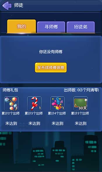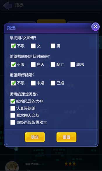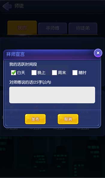 在全新的“师徒”系统中,无论是“师父”还是“徒弟”,都能够在发布相关信息的时候,有更多选项帮助自己找到心目中完美的师父或者徒弟。