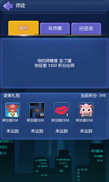 如果您的积分已经达到了6400分,就能开始发布收徒信息啦!并且随着积分的增长,作为“师父”的你还能同时带领多个徒弟。