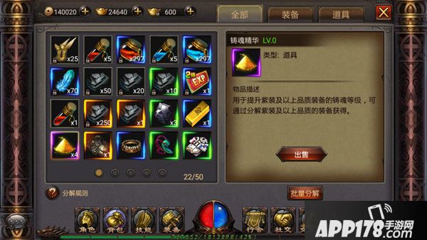 国人讲究铸人铸魂,那么《铁血沙城》中的铸魂体系会用什么样的形式呈现呢?铸魂以铸魂精华为道具,上图中紫光环绕着的就是此次的铸魂精华了,看着就有一种盆满钵盈的感觉了。同时铸魂精华的紫光也就暗示着,只有紫色及以上的装备才能进行铸魂,但是玩家需达到50级才能开放铸魂系统哦。
