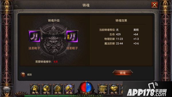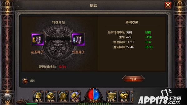 同时铸魂属性提升,根据基础属性提升,但是每个铸魂等级对应装备的属性加成比例都一样。