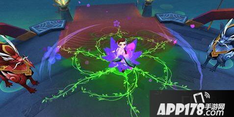 若说金镶玉以花毒为特色,那花非花这个角色在策划时则是以蝶衬花。“蝶恋花”和“蝶舞”的视觉效果都如技能名称一般美轮美奂;“似花非花”的技能则以牺牲血量使她花态和非花态之间切换,花态下所有技能效果都变成奶妈为队友加血,非花态下又成为攻击技伤害敌人,角色转换之间为队友打得一手好配合。