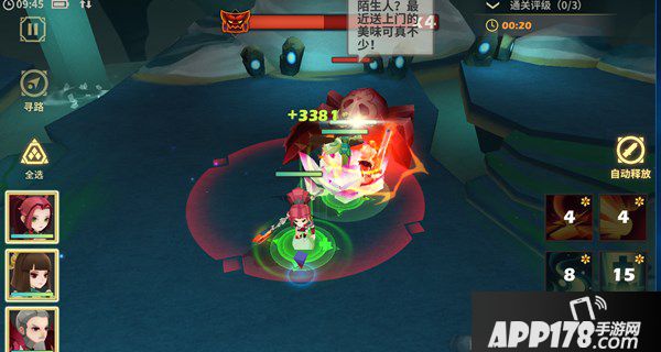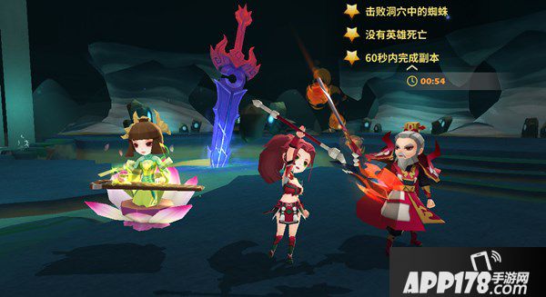 进入副本时会有很多小怪,仔细发现其实他们一点都不伤人,完全可以不管。天选者只需要直捣黄龙杀红蜘蛛即可。红蜘蛛在放出高伤害毒液之前,会有一个红色施法圈,天选者一定要将英雄拉出施法圈,或者……就是死。这一关要保证每个英雄都活着,就是说奶妈甘草要在场上咯。英雄组合爆发够高,有甘草在奶,躲开毒液施法圈。此副本三星通关GET了。