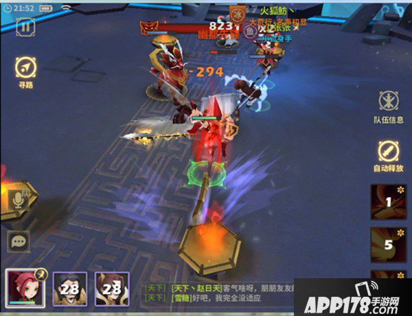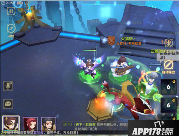 6、产出四个妖魔,一个眩晕怪、一个治疗怪,一个输出怪,一个召唤怪(地图左侧)。其中召唤怪不能移动,所以将其他三个拉到召唤怪旁边,群攻击杀。优先击杀输出怪和眩晕怪为宜,不过难度不高,可以不用讲究顺序。