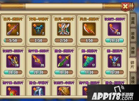 直接扫荡20次,扫荡完了可以用60元宝再扫荡20次 这样2天左右就差不多够30个碎片了。 还有推塔也有装备箱子。