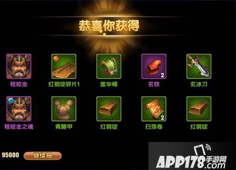 抽铜板10连抽,铜板抽的道具也不错,有紫色武将、包子、铜钱箱子、还有紫色神器宝物碎片喔。抽到的武将直接分解,分解的玉魂可以去神秘商店换取武将魂魄,8000玉魂可以换取10个红将魂,可以用元宝刷新神秘商店。同时,也可以用刷新卷轴来刷新,这样几天就可以弄到想要的红将了。