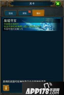 废墟寻宝是限时开放的关卡,玩家攻打据点后会获得宝物碎片,在神秘商店里使用碎片可进行奖励兑换。指挥官等级需达到20级方可参加,据点难度越高,碎片奖励越多。可攻打5次据点,攻打成功,则会扣除一次次数,攻打失败则不扣除。