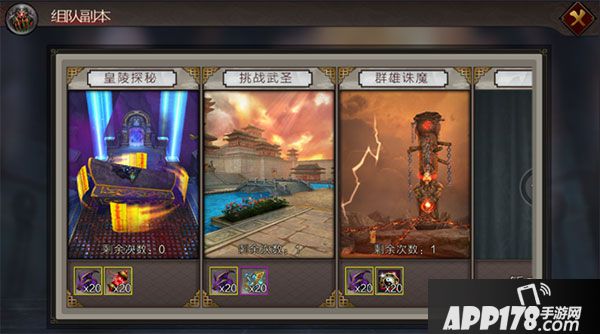 大侠们可以通过主界面右下角的日常按钮进入组队副本,目前是开放了3个副本供玩家选择。(30级开放组队副本)