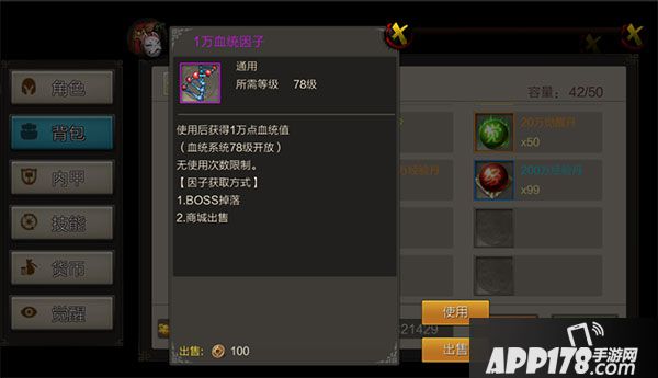 大侠可以使用血统因子来增加血统值,游戏中的所有大BOSS均有几率掉落因子的哦!