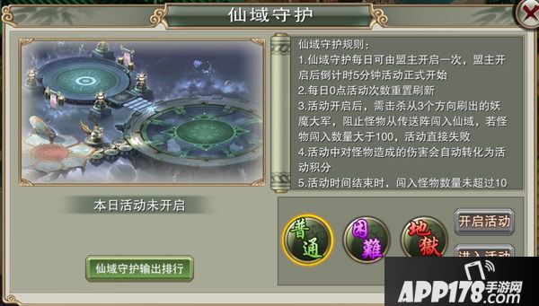 5、仙域守护分为普通、困难和地狱三种难度。