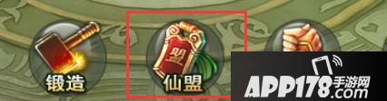 先点击游戏主界面左上方的角色头像,这时游戏主界面下方会弹出菜单栏,再点击菜单栏中的“仙盟”,在仙盟大厅界面,点击“仙域守护”图标进入。