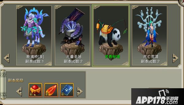 点击游戏主界面上方的“副本”图标,在打开界面选择灵兽秘境,再点击界面右方的“开启副本”图标即可。