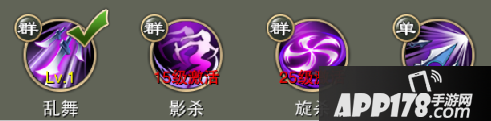 主动技能:乱舞、影杀、旋杀、七杀