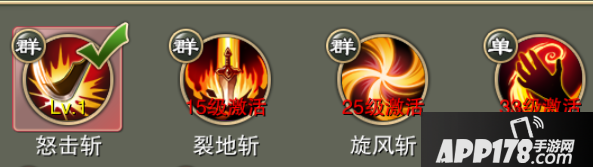 主动技能:怒击斩、裂地斩、旋风斩、天擒术
