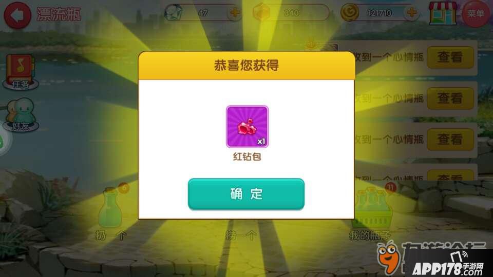 这个可以捞瓶子,自从更新了以后捞中物品的几率变大了耶,友友可以试试,能捞到了红钻包呐! 【红钻用处】 红钻有什么用?可以在精品商城里购买衣服!可以用来分解衣服,也可以用来抽奖! 说到抽奖呐,脸黑的朋友真的别试了,还是存着吧! |