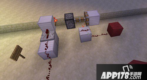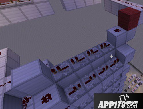 这个是向下电路的反面,利用方块充能传导的电路。搭下去差不多到距离地面10格的位置就可以停了。