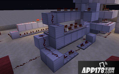 然后是一条盘旋上升的电路,盘两圈一个周期,如此重复即可。这里之后的所有中继器都不用换档位,但要记得都是4个4个的。左下红色连接图1红色部分。不知道你看清楚这边转了两圈没。