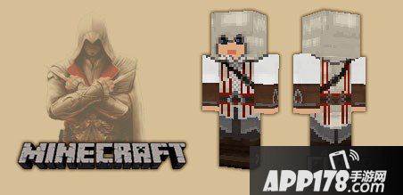刺客信条是一款非常经典的大型动作类游戏,想必很多玩过这款游戏的朋友对于E叔(ezio)一定不陌生,今天APP178手游小编给大家带来的是在我的世界中还原这个经典人物的皮肤,我的世界是一款可以自由定制皮肤的游戏,下面大家就跟我一起来看看吧!