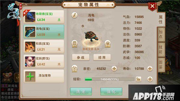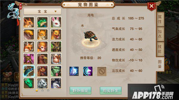 对于玩过《问道》端游的老玩家而言,海龟宝宝是一个非常实用的宠物。海龟宝宝以其强悍的防御力、坚实的血量、在二十级就可以开始培养的低门槛,受到了广大道友的喜爱。在《问道》手游中,海龟依然是一个适合玩家在等级较低时携带的宠物。玩家等级达到20级的时候,师门会赠送给玩家一只海龟宝宝。相较于端游,《问道》手游的中海龟宝宝总成长有所增加,其中法攻成长和速度成长的数值增长较大。因此,随着海龟宝宝等级的增加,除了坚实的防御和充足的血量外,法术攻击的效果也会越来越强,有这样一只综合实力雄厚的海龟宝宝做队友,各位道友无论是修行、杀星、杀盗还是除妖,都会轻松很多。