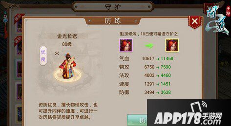 历练低品质(蓝色、紫色)的守护可以通过历练提升为高品质(金色)守护。品质越高,守护的能力自然也会有所提升。