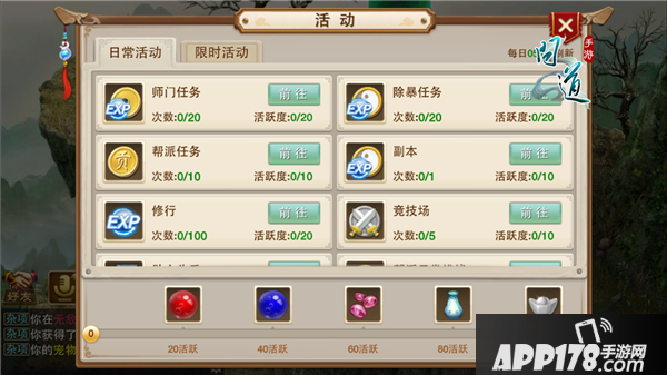 玩家打开活动界面,完成一些指定的活动后,会获得一定活跃指数,达到指定的活跃指数后,就能领取相应奖励啦!