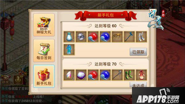 除了“神秘大礼”和“每日签到”外,《问道》手游还为每一位道友准备了多重新手礼包,道友们到了一定等级后,都可以领取新手装备和道具。目前的设置是10级、20级、30级……以此类推,到达等级的玩家都可以领取,玩家们也不必担心会忘记领取,因为在你刚刚到达整十级别时,新手礼包会自动弹出,提醒玩家领取并装备。