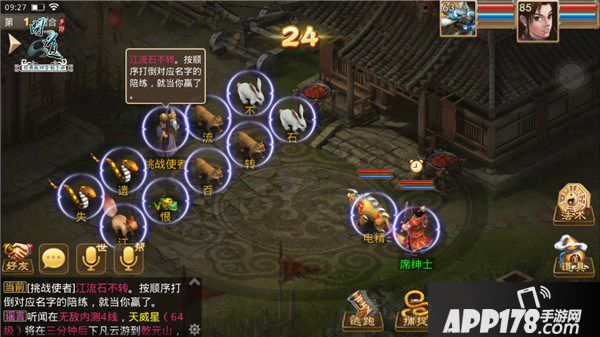 最后,是小编觉得最有文化素养的一种挑战方式。考验团由帮派日常使者带着一群小宠物组成,每个宠物的名字都是一个字,帮派日常使者会吟一句“诗”,玩家要根据帮派日常使者“诗”中字的顺序,攻击对应名字的宠物,选择正确就能顺利取胜,只要不用群攻技能,物理攻击还是单人法术攻击,道友们可自行选择。