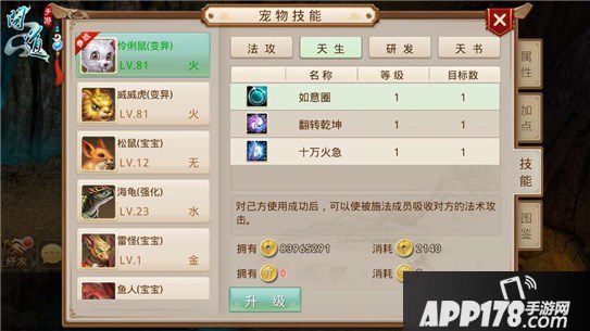 技能的学习是《问道》手游宠物养成中很重要的一支,宠物具有非常丰富的技能系统,有法攻技能、天生技能、研发技能和天书技能。法攻技能伴随宠物等级的提高而成长,天生技能和研发技能则是需要通过帮派研发来升级,使用天书散卷可以增加宠物的天书技能。当然了,并不是所有的宠物都能具有天生技能,如果没有的话也可以使用宠物天技秘笈书来激活宠物的天生技能,前提是该类型宠物要可拥有此天生技能。