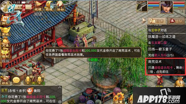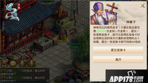 若想习得这随心所欲获得自己想要的变身卡的本领——南荒巫术,道友们就必须跑跑腿,前往天墉城找到能察阴阳祸福、能知过去未来的高人神算子啦。道友们点击NPC“神算子”与之对话,便可迅速了解“南荒巫术”了。