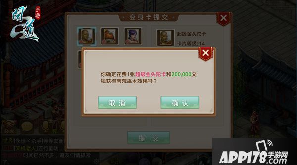 与神算子对话可知,道友们只需花费200000文金钱(代金券),且提交一张怪物变身卡就能习得南荒巫术。学习此术法后,在变身卡对应怪物出没的地方,便只会遇到道友所提交的变身卡上的对应怪物。比方说,小编提交了一张超级金头陀卡,在接下来的巡逻中,只要在金头陀出现的地图上,关闭驱魔香,便只会遇见金头陀,不会遇见其他怪物。开启神木鼎后,便有机会获得超级金头陀卡了。
