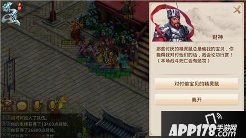 与战神相同,财神身边同样有9个小怪,分别为精灵鼠、宠物狗、财气猪和功夫龙,挑战的主要内容就是帮助财神清理他身边的精灵鼠。另外,这项挑战除了功夫龙之外的其他小动物都是没有攻击能力的,所以比较不用担心死亡的问题。
