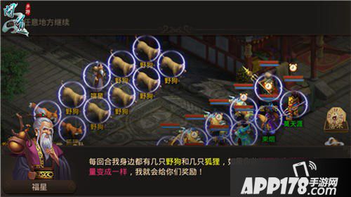 福星挑战最简单的方法就是在队伍中搭配两个水,使用单体障碍技能分别冰冻一只野狗和一只狐狸,其他队员全部使用群伤技能把剩下的小怪全部杀死就完成了。不过有一点要注意,就是其他队员的速度不能超过这两个水,所以敏水最好,或者其他队员把鞋子脱了也是一个办法。福星挑战与财神挑战相同,也是二十个回合,只要两个水配合好,也是很简单的一个任务。